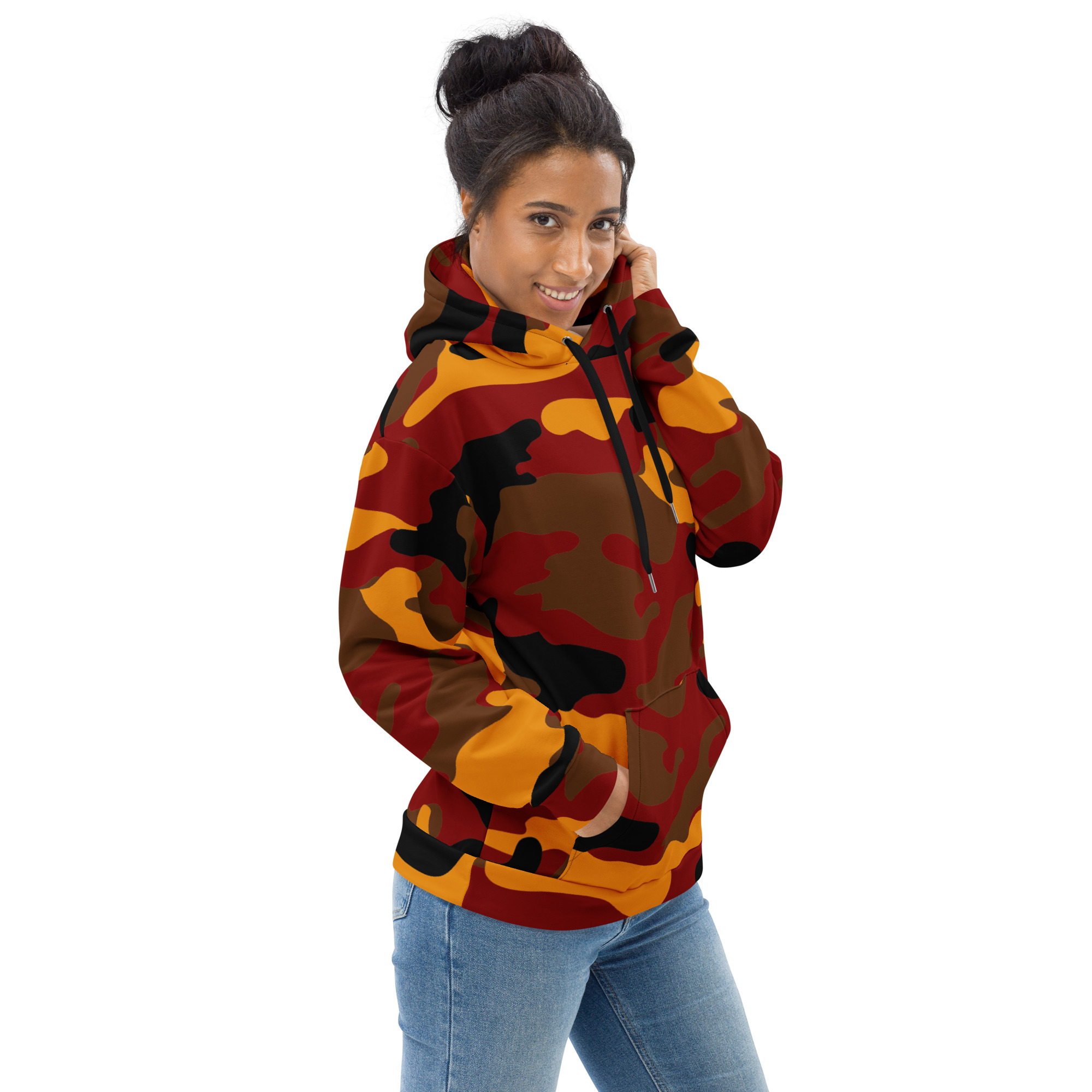 This comfy unisex hoodie has a soft outside with a vibrant print and an even softer brushed fleece inside. The hoodie has a relaxed fit, and it’s perfect for wrapping yourself into on a chilly evening.