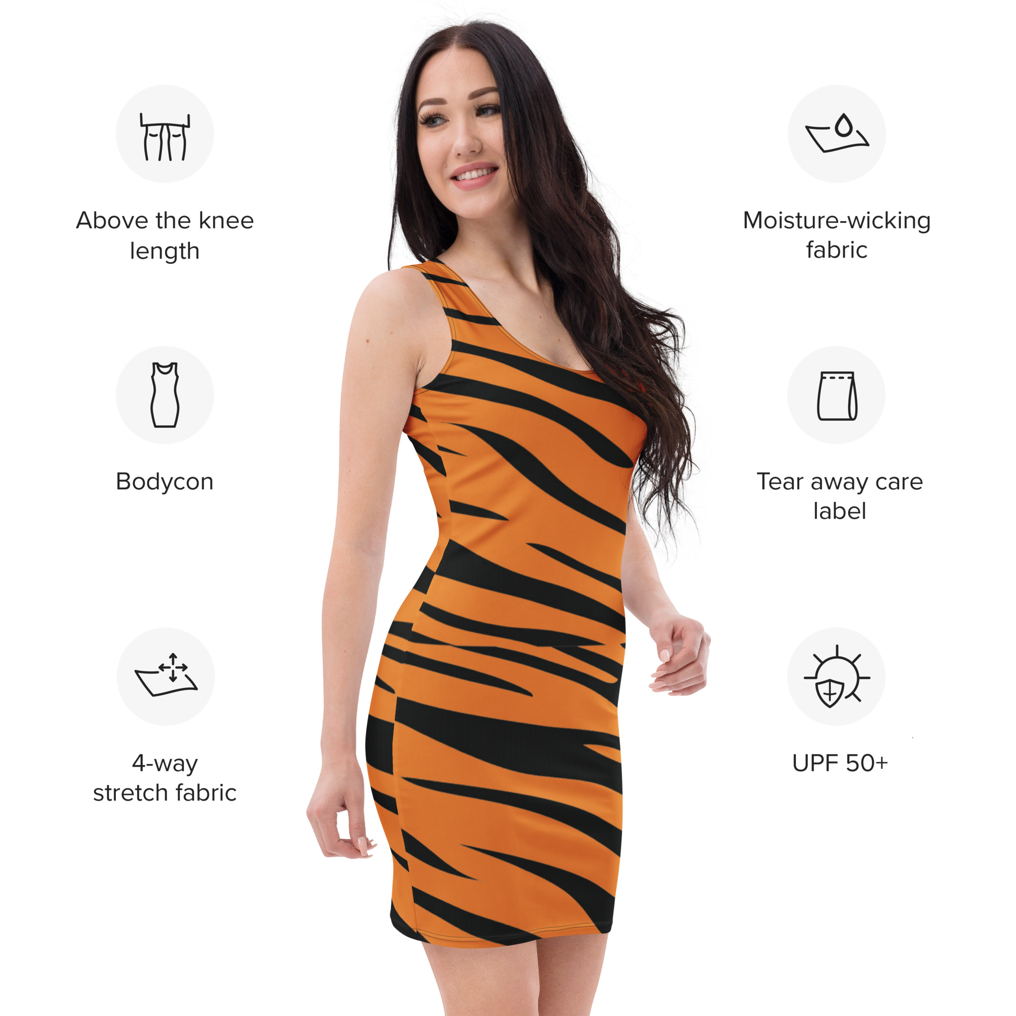 Make a statement and look fabulous in this all-over printed, fitted dress.
